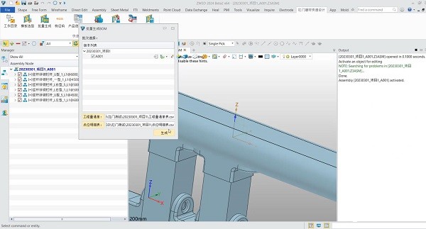 5、个性化功能开发:通过深入调研湖南红门产品结构及变化规则、以及设计流程存在的卡点问题,基于tigerenter3D平台开发了一套包含模型参数化设计、装配、BOM报表输出、工程图出图等功能的快速设计插件,工程师只需简单两三步操作即可得到整个项目的全部数据,快速输出数百套施工图纸。