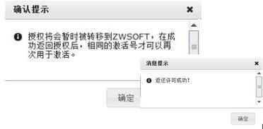 1.4点击“确定”按钮,提示“返还许可成功”后,返回授权完毕。