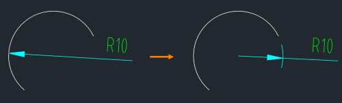 如何做出下图右侧的半径标注,带有延长弧线样式。
