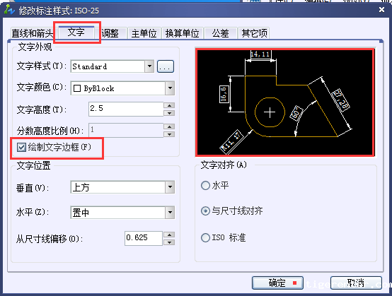 如何实现这个效果呢?方法:格式——标注样式——修改——文字——勾选文字外观下面的“绘制文字边框”——确定。可参考下图: