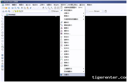 当然也可以在命令菜单栏选择分解命令:修改——分解,如下图所示