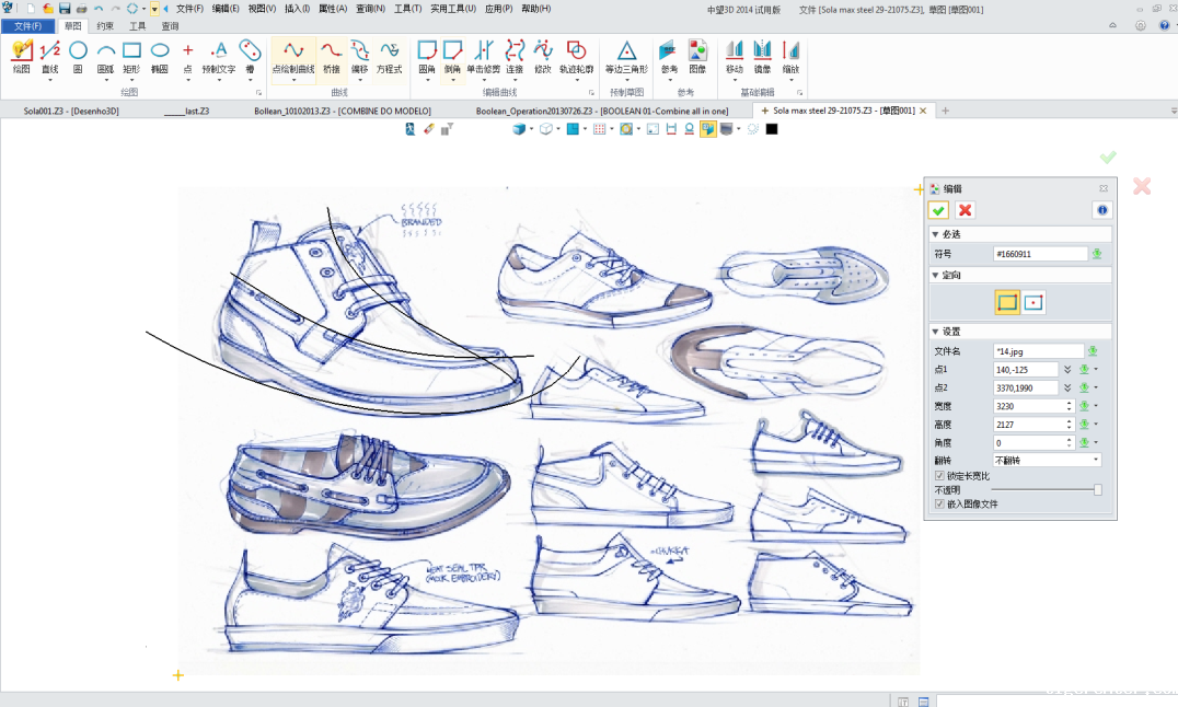 (1) 首先,tigerenter3D可以通过导入工业设计师的草图图片,在草图环境通过动态拖拽的方式,设置长宽高及图片的透明度,展开主要造型线条的绘制,从而创建实体或曲面。