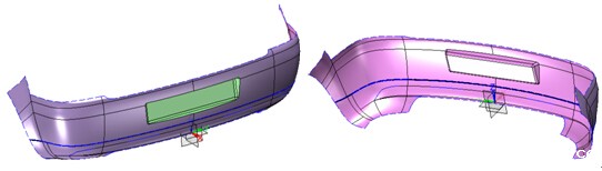 【常规设计】:一般要通过“面”功能来做出车牌的安装位(如下图),然后使用“面修剪”或者“合并”等功能,把车牌和后保险杠这两个面组合在一起。这种方法操作步骤繁多,且实际操作起来,效果也不够直观,影响设计工程师的工作效率。