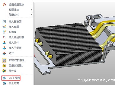 1.在tigerenter3D的操作区域右键选择“2D工程图”,轻松进入工程图模块,如下图