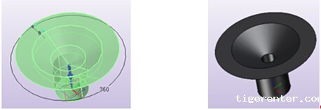 在tigerenter3d中有些命令功能可以互相协作配合进行,快速完成设计需求,例如想加厚面可以用偏移命令来完成;再如要在细小的圆柱周围加筋可以用拉伸来完成。